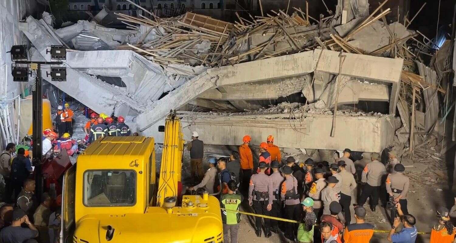 The under-construction, multi-storeyed building of the Al Khoziny Islamic boarding school in the East Java town of Sidoarjo collapsed when more than 100 students had assembled for afternoon prayers, reported a state news agency.