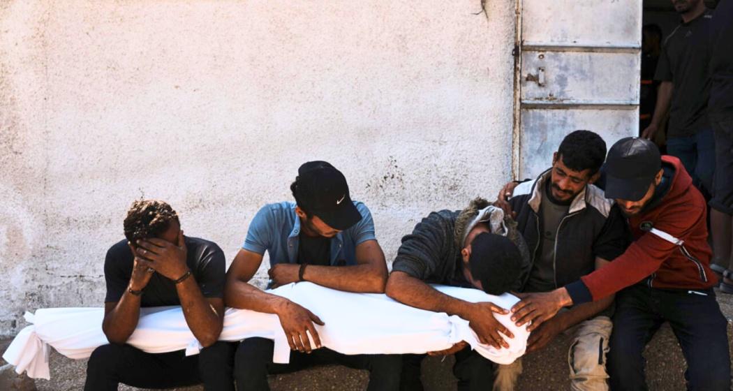 Palestinians mourn over the bodies of their relatives who were killed in an Israeli military strike on Gaza at Al-Shifa Hospital in Gaza City, Wednesday, June 4, 2025.
