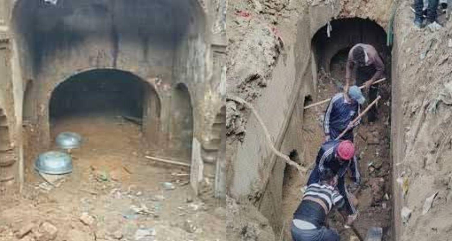The excavation process is being carried out with manual tools to ensure that the structure remains intact and free from damage. The decision to use manual methods follows concerns that the earlier use of machinery, specifically a JCB, could negatively impact nearby buildings.
