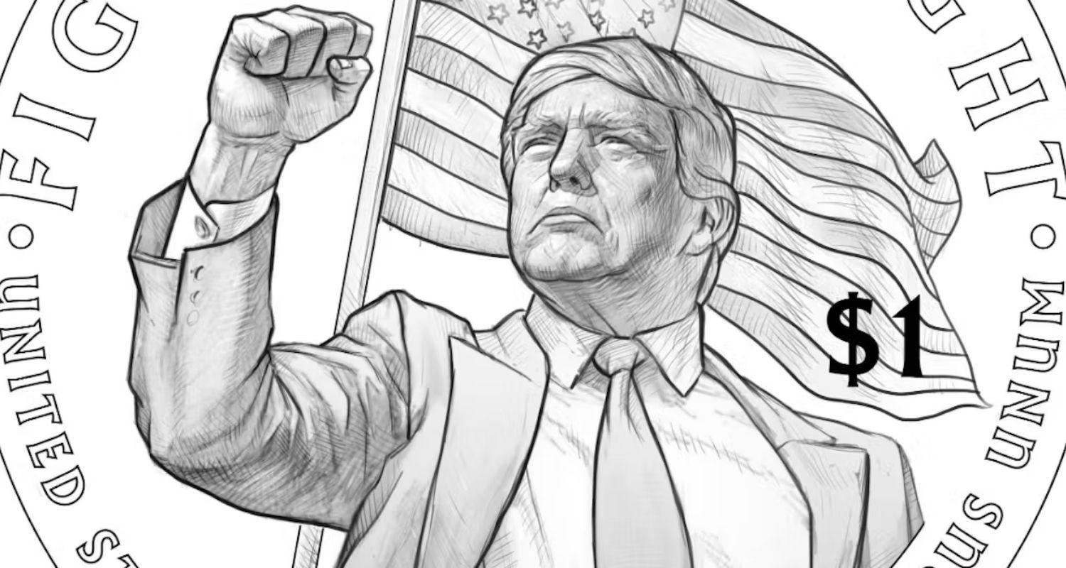 The proposed coin depicts Trump in profile on one side (the obverse). On the other side (the reverse) the President raises his fist in defiance accompanied by the words “fight, fight, fight”.