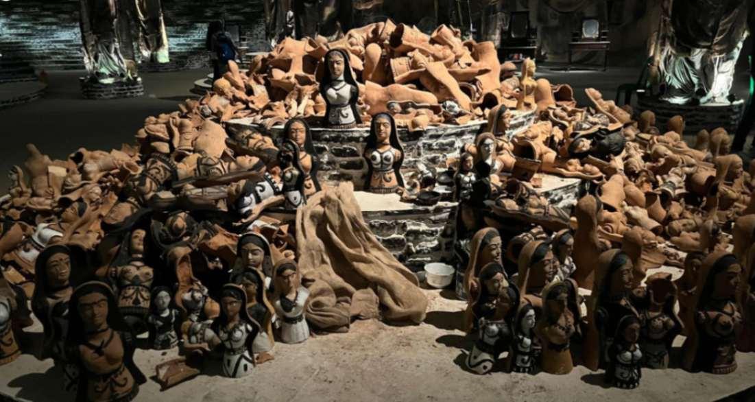 But Dahan is not just a requiem. It is resistance. Along the bare outer walls, women rise in protest— their figures reaching skyward, a collective uprising of flame and spirit. Above them spreads the fiery wings of the Phoenix, myth’s eternal firebird, symbolising the unquenchable will of survivors who turn ashes into renewal.