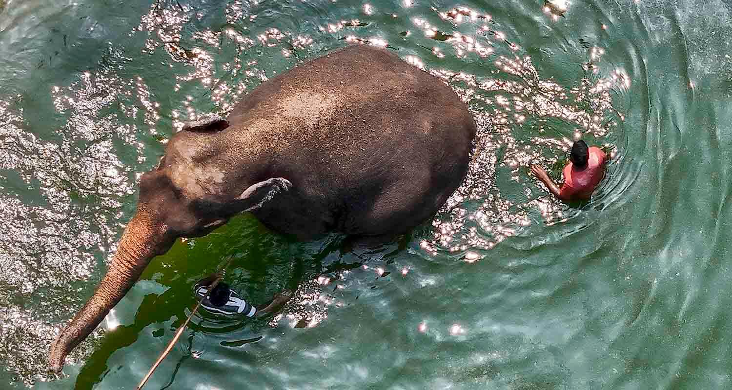 Hot Summer Day: Two men bathe an elephant on a hot summer day at the Veermata Jijabai Bhosale Botanical Udyan and Zoo, in Mumbai, on Thursday.