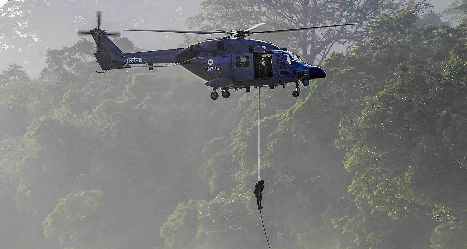 A glimpse of an operational demonstration by Andaman and Nicobar Command at Radhanagar beach, Swaraj Dweep Island, in Andaman and Nicobar Islands. Integral combat platforms and forces of the Andaman and Nicobar Command (ANC) demonstrated their multi-dimensional operational capabilities, including a coordinated landing by amphibious platforms of the Command.