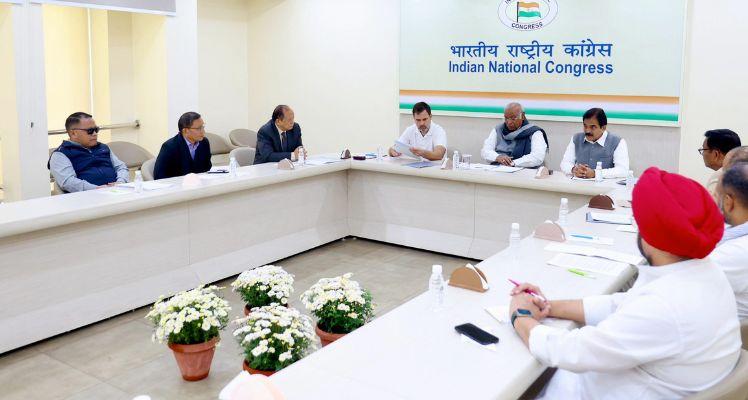 Congress president Mallikarjun Kharge convened the review meeting at the All India Congress Committee headquarters in Delhi where former party chief Rahul Gandhi and other senior leaders were also present.