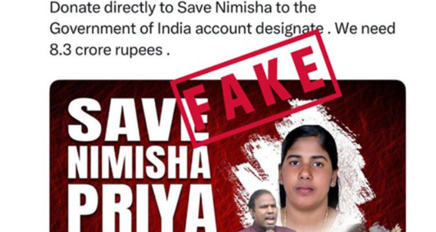 In a post on its official X account, MEA FactCheck labelled the claims as "fake". The post specifically addressed an online appeal urging people to donate directly to what it claimed was a government account to raise funds for Priya’s case. The MEA clarified that such claims are false and advised the public not to engage with them.