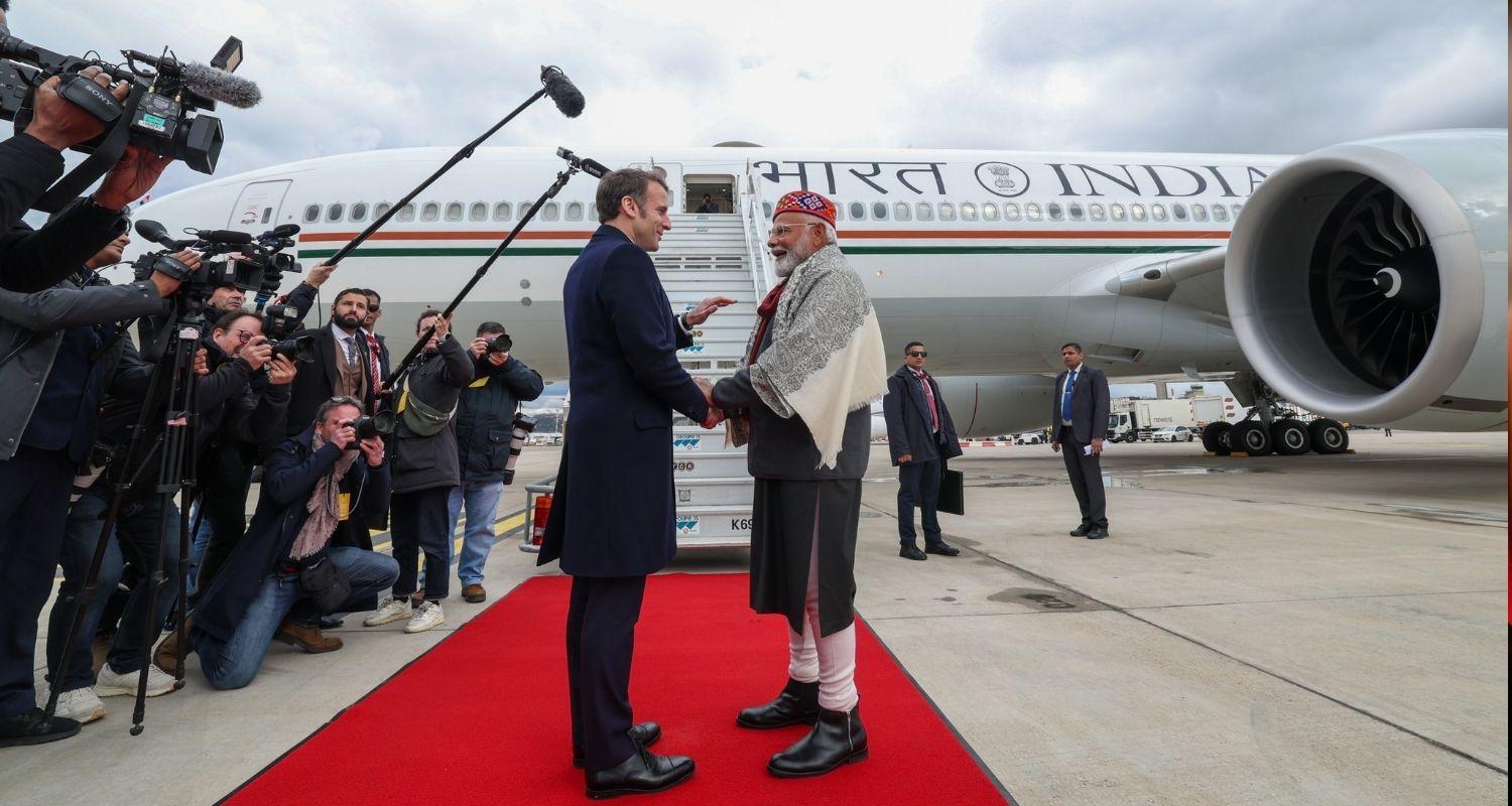 President Macron came to see off Modi at the airport in Marseille.