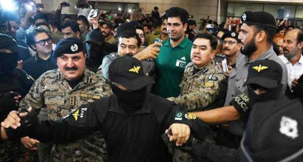 Arshad Nadeem was welcomed with celebrations by fans and an emotional reunion with his family, Pakistan’s first individual Olympic gold medallist returned home after his flight touched base in Lahore on Sunday accompanied by a water cannon salute.
