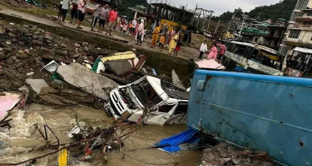 HRTC buses parked at the bus stand were submerged, with some swept away by the floodwaters. Homes along the rivulet’s banks were inundated, and many vehicles were carried off by the powerful current.